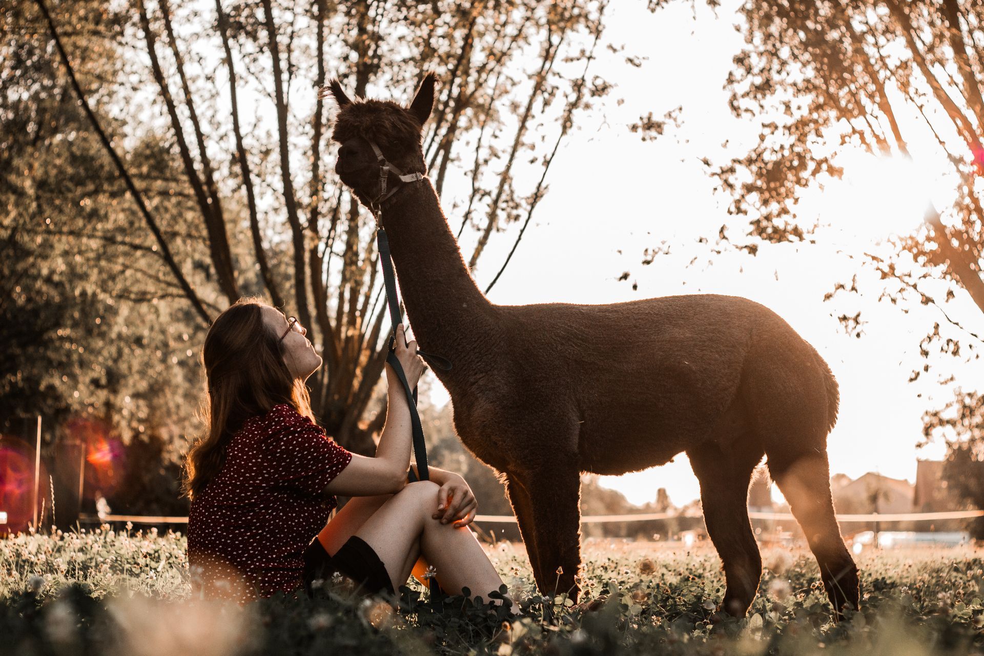 Für ein Shooting nehme ich mir viel Zeit. Damit eine entspannte Atmosphäre geschaffen wird zwischen Tier und Mensch. Ihr werdet schnell vergessen, dass ich mit einer Kamera bei euch bin, wenn ihr euch mit eurem Alpaka anfreundet.