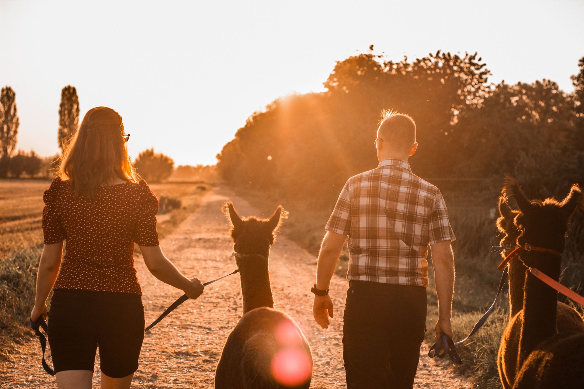 Eine wunderbare Möglichkeit um ein Fotoshooting und ein Spaziergang oder eine Wanderung mit den Alpakas zu verbinden.